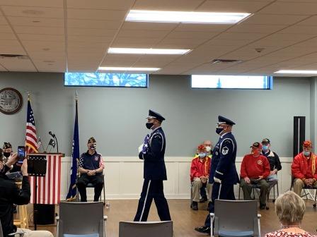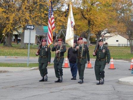 Members of the Marine Corp League, VFW Post 8113, Navy Seabees of America, Amvets Post 8113, 82nd Airborne and American Legion Post 735 marched from the Legion Post to the Community Center for the ceremony.