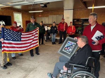 Members of Amvets 8113, American Legion and Marine Corps League join Paul and Tom Wisniewski for medals presentation |