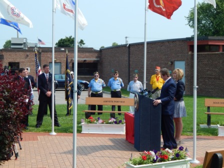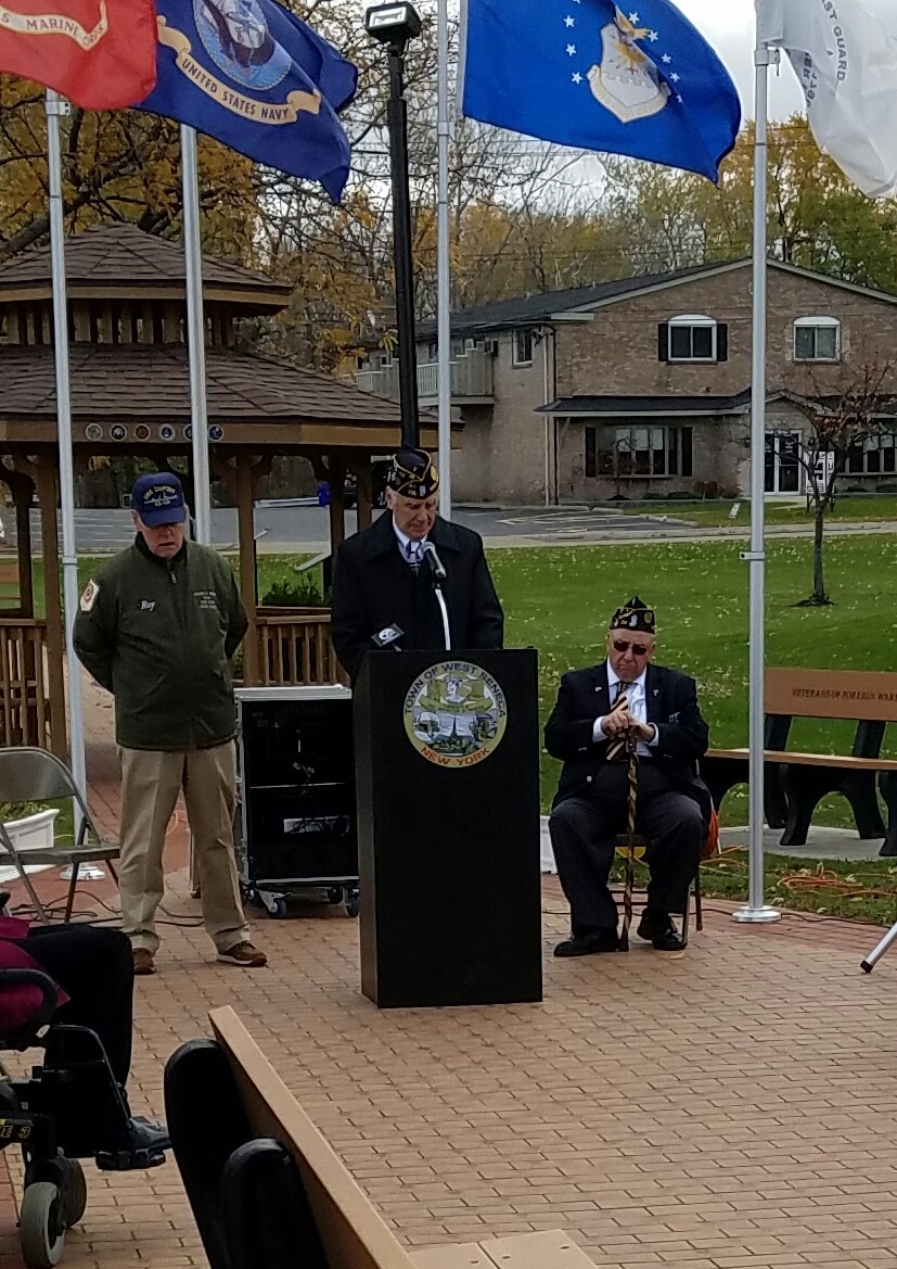 Several hundred veterans and residents were in attendance to hear guest speakers Robert E. Pecoraro, Colonel (R), U.S. Air Force and Timothy Kennedy, Congressman, New York State District 26. The 21–Gun salute was provided by American Legion Post 735, under the direction of Captain Mark McMahon and “Taps” was performed by Jeff Glaub.