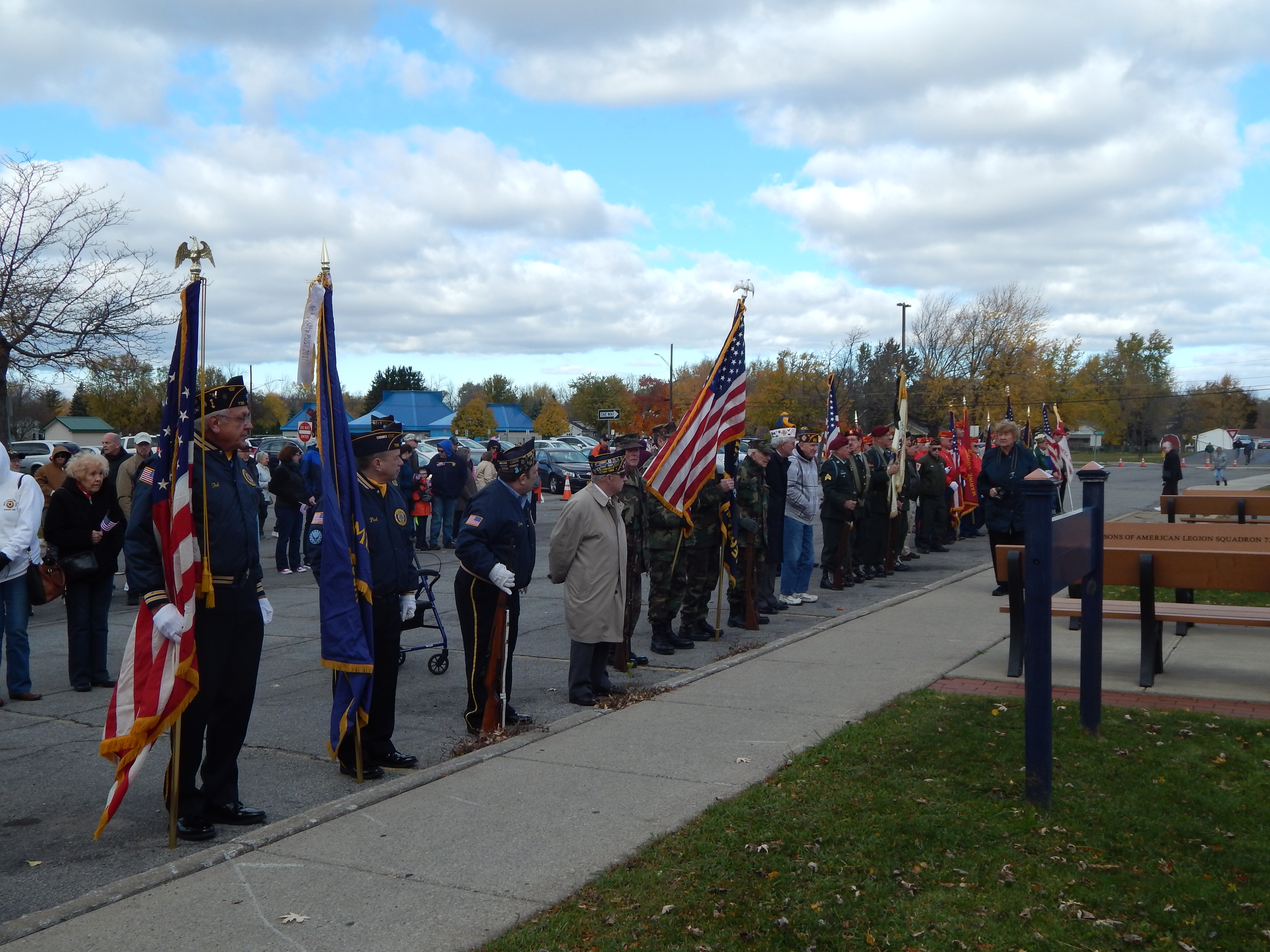 Under a partial sunny sky and the temperature reaching 60 degrees, the seven member posts of the West Seneca Joint Veterans Committee made the short march from Post 735 to the Walkway of Freedom to celebrate the Town's 49th Annual Veterans Day Ceremony.
