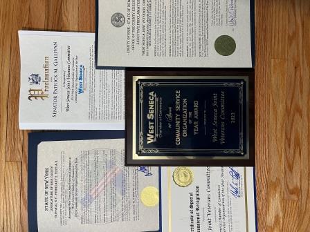 This award was made possible by the dedication and hard work of the West Seneca Joint Veterans Committee. The Committee would also like to thank our residents, businesses, other service organizations and the West Seneca Town Board for their unwavering support of our veterans.