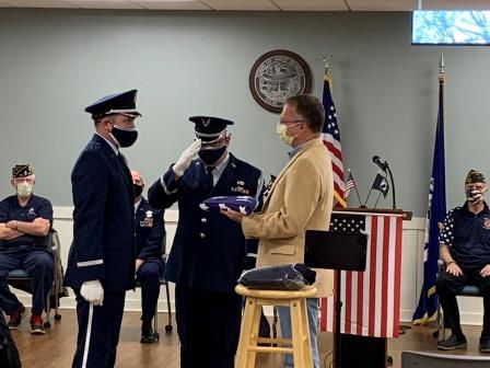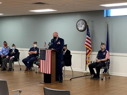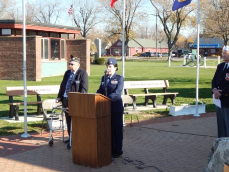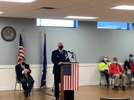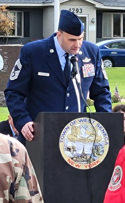Chairman Jim Manley presided over the ceremony honoring the service of all military veterans and Chaplain Kenneth Herkey led the veterans in prayer. The guest speaker for this year's program was United States Air Force Chief Master Sergeant Raymond F. Fitzpatrick, Jr., currently stationed at Niagara Falls Air Base. CMSgt Fitzpatrick's remarks stressed the importance of remembering the sacrifice of all veterans and their families while serving in the United States military service.