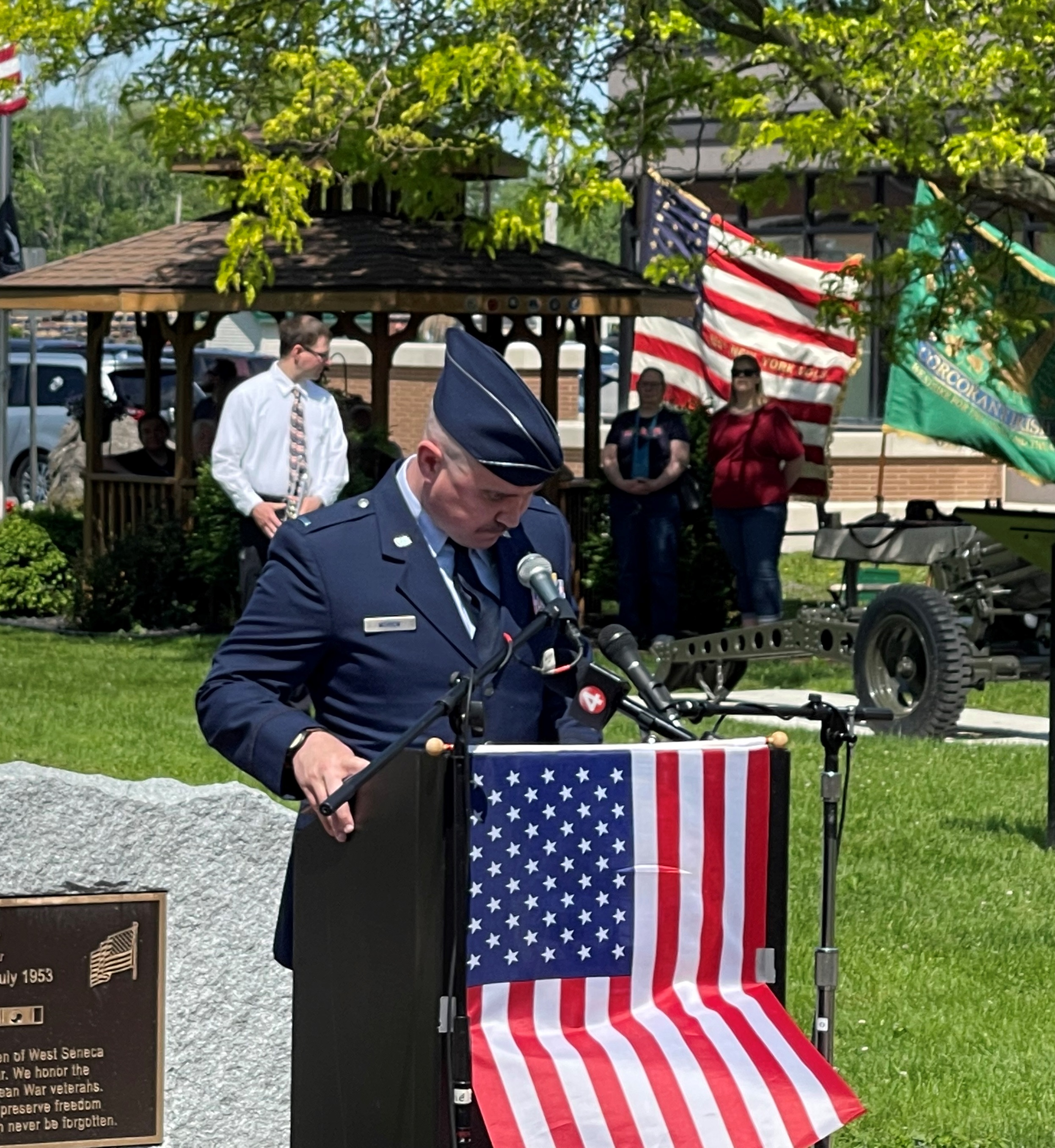 Our scheduled guest speak, Colonel Lara Morrison, Commander of the 914th Air Refueling Wing, Niagara Falls Air Reserve Station, New York, was unfortunately taken ill and was unable to attend the Memorial Day Ceremony. 1st Lieutenant Lucas
