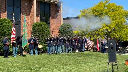 To honor those service members who had fallen in the service of their country, members of the 155th New York Volunteer Infantry provided a musket salute followed by the sounding of Taps.