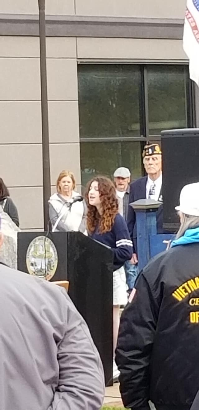 Natalia Pernick, a student at West Seneca Middle School, lent her talent to the ceremony with a beautiful rendition of the Star Spangled Banner and America the Beautiful.