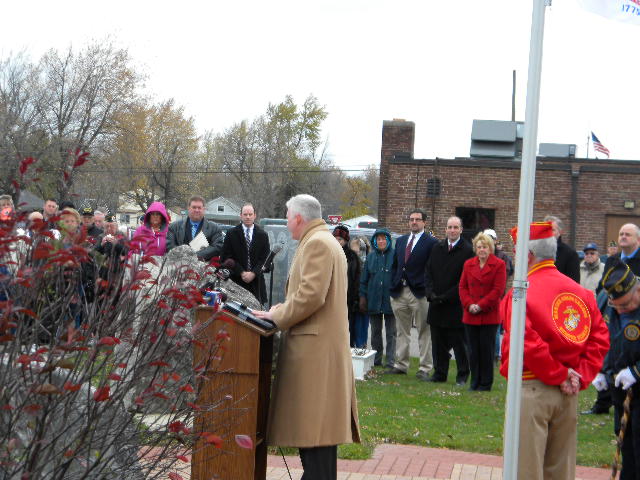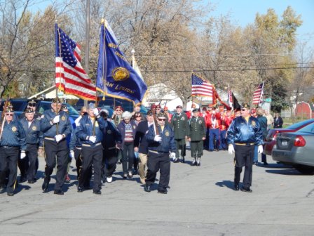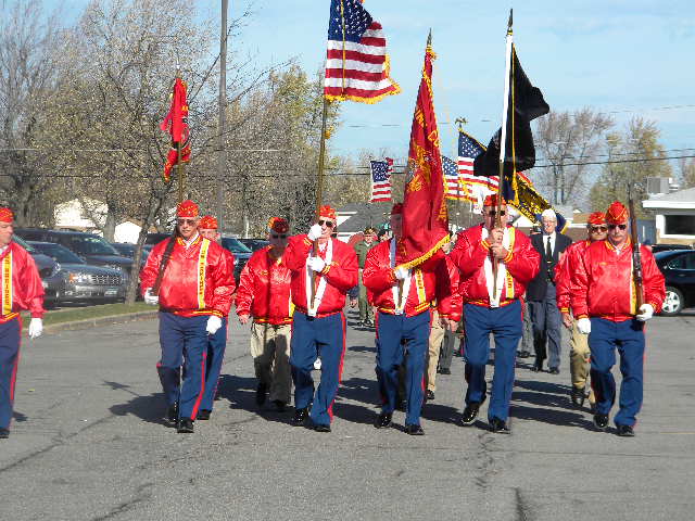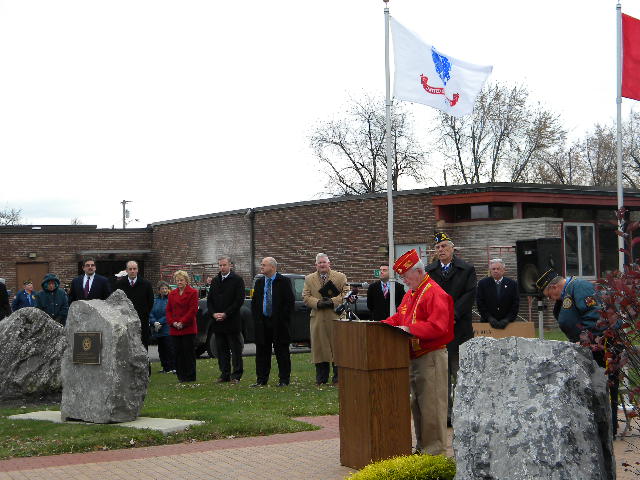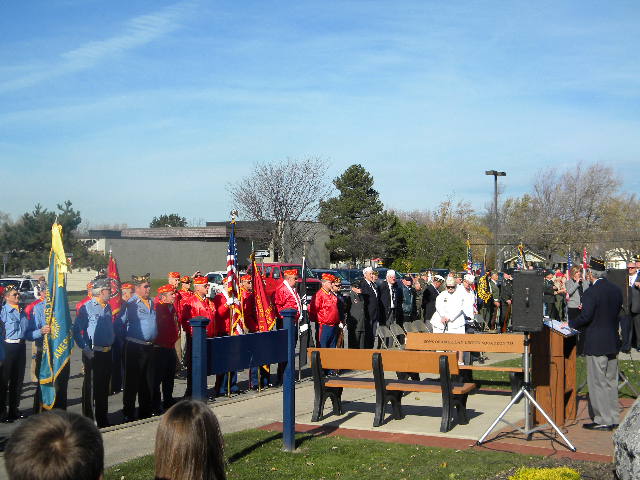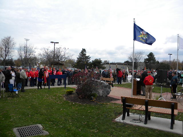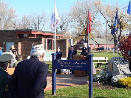 Under a partial sunny sky and the temperature reaching 60 degrees, the seven member posts of the West Seneca Joint Veterans Committee made the short march from Post 735 to the Walkway of Freedom to celebrate the Town's 49th Annual Veterans Day Ceremony.