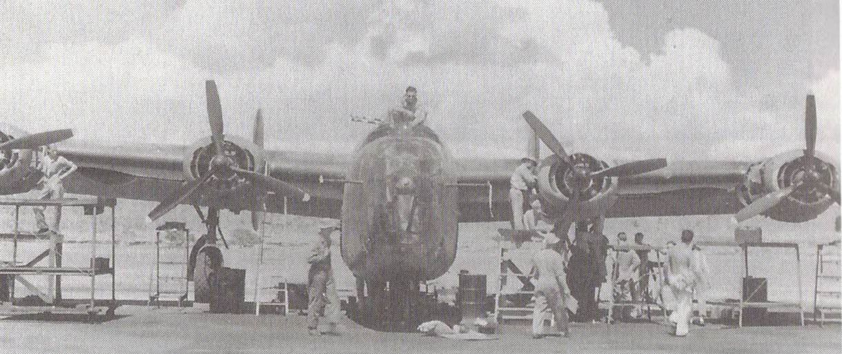 Engineers finish work on a B-24 Bomber |
